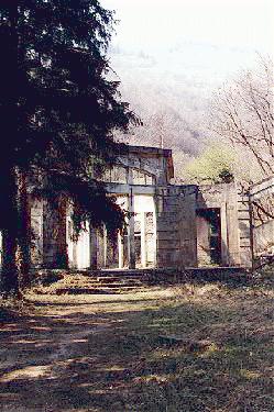 Vellone station as it appeared to me throught the vegetation. Foreground: funicular Campo dei Fiori Up/left corner: funicular Sacro Monte (Note the hexagonal architecture) |