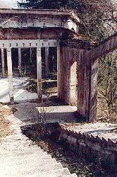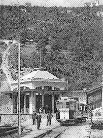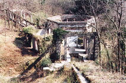 Vellone station as it appeared to me throught the vegetation. Foreground: funicular Campo dei Fiori Up/left corner: funicular Sacro Monte (Note the hexagonal architecture) |