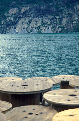 excavated rock from Folgefonn tunnel is dumped in the fjord.